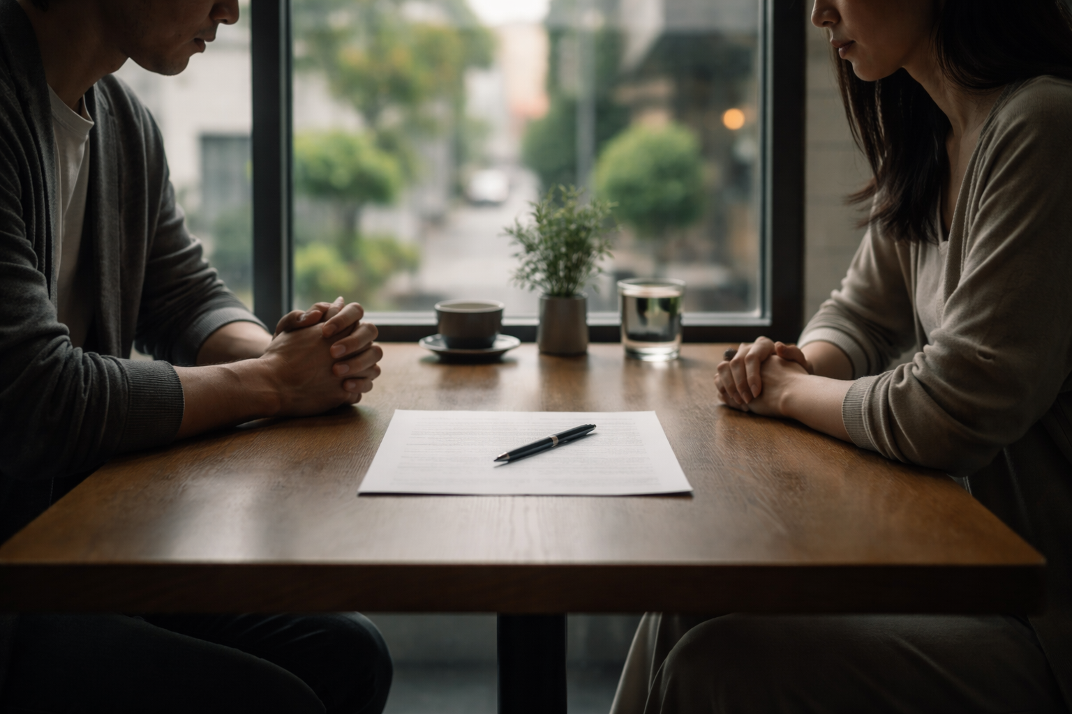 まず前提として、二人の「別れ」は感情的な決裂ではなく、依存を避けるための理性的な距離の取り方でした。別れの直後も、完全に音信不通になるわけではなく、必要な場面では互いに言葉を交わしています。